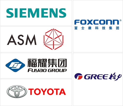 眾多國內外知名企業(yè)見證:富士康、格力、美的、赫比、福耀、東風、豐田、中國一汽,住友,松下,格蘭仕、西門子、廣東宏遠等。